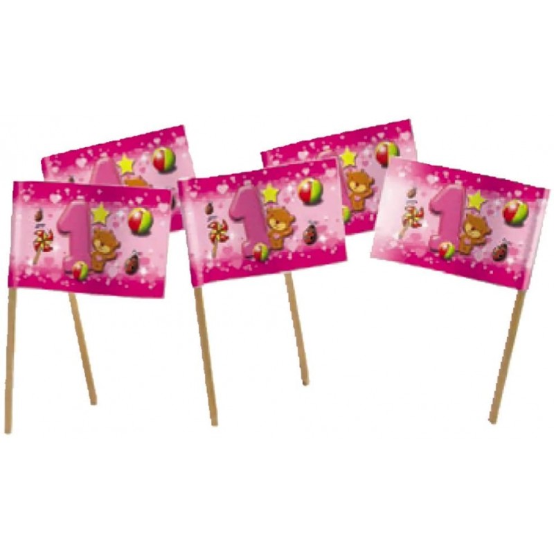 50 PICKS BANDIERINE PRIMO COMPLEANNO TOYS ROSA BIG PARTY
