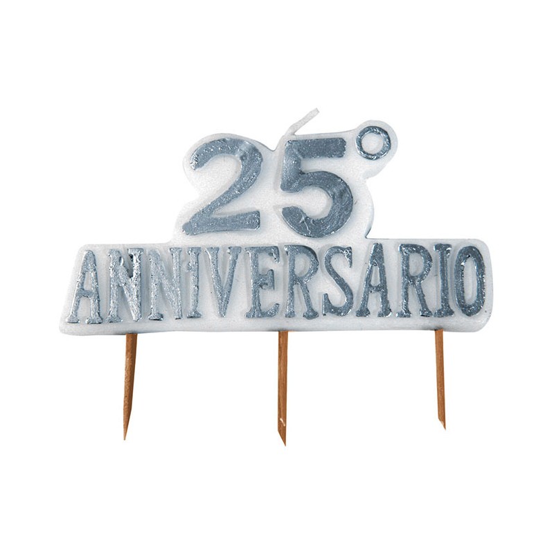 Candelina picks 25° anniversario argento Cm. 9x7 big party