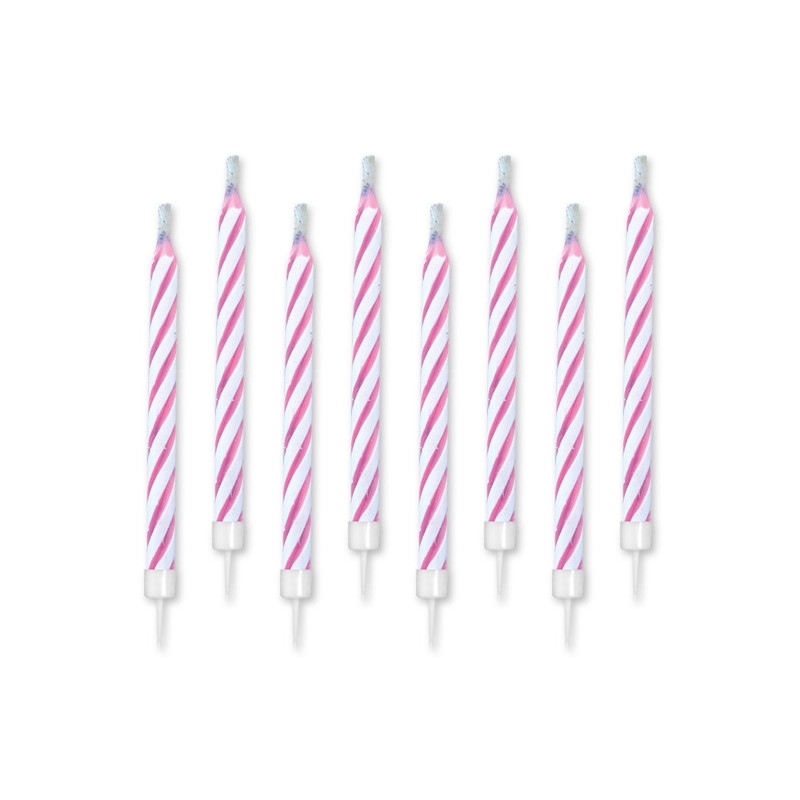 10 CANDELINE MAGICHE ROSA CM 8 + SUPPORTO