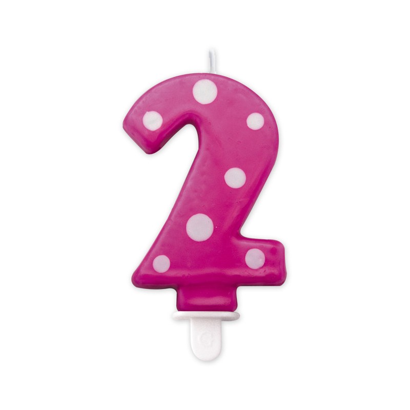 Candelina Pois Fuxia 8,5 cm Numero 2 BIG PARTY