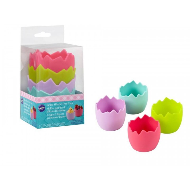 Pirottini in silicone colorati, a forma di uovo schiuso.