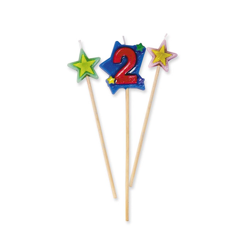 3 CANDELINE PICKS NUM 2 CM 16 BIG PARTY