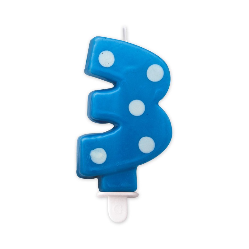 Candelina Pois Turchese 8,5 cm Numero 3 BIG PARTY