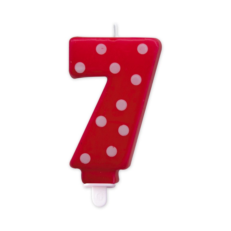 Candelina Pois Rossa 8,5 cm Numero 7 BIG PARTY