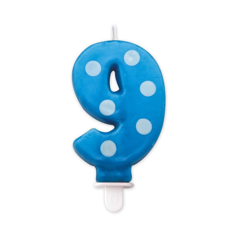 Candelina Pois Turchese 8,5 cm Numero 9 BIG PARTY
